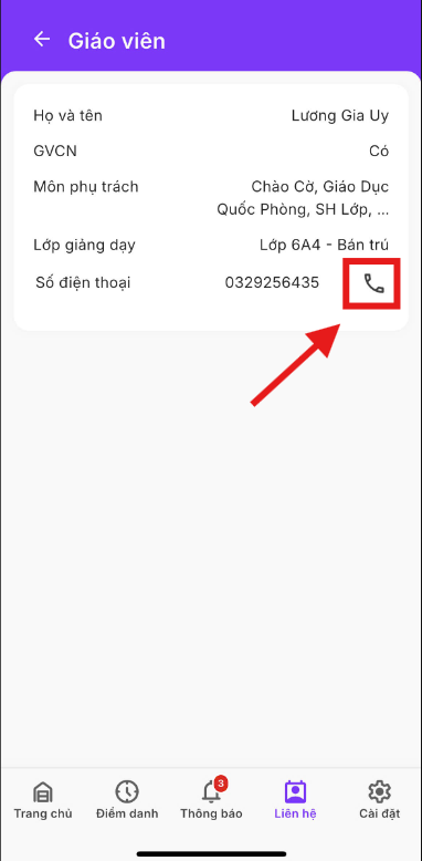 Truy cập thông tin liên hệ của giáo viên và phụ huynh học sinh trong lớp.